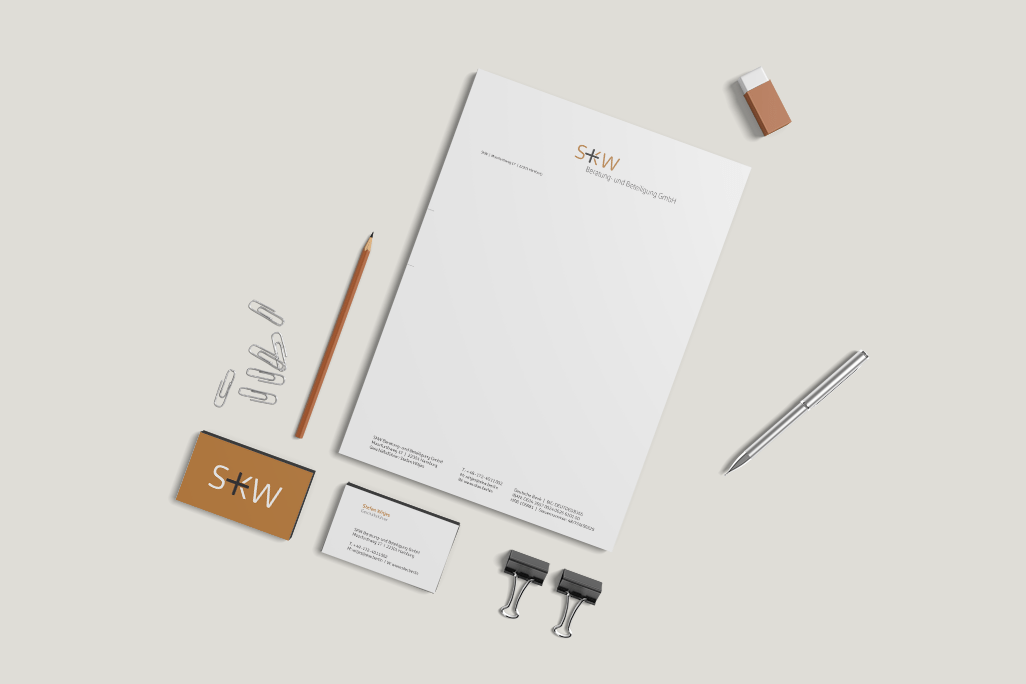 Die SKW Beratung-und Beteiligung GmbH ist ein inhabergeführtes Unternehmen. Es ist im Bereich der Unternehmensbeteiligung und Geschäftsführung tätig. In der Funktion als Gesellschafter werden Partnerunternehmen mit der persönlichen Erfahrung und spezieller Expertise unterstützt. Ein Redesign des Logos und der Geschäftsaustattung stand an.